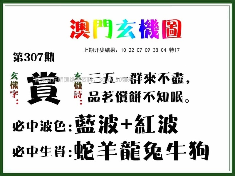| 307期七肖 | 羊狗龙牛鸡鼠虎 | 开:狗20中 |